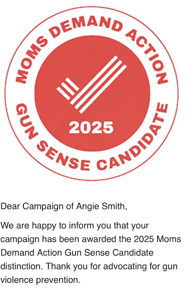 I’m honored to be named a 2025 Moms Demand Action Gun Sense Candidate. Thank you to everyone who stands with me for safer communities. Don’t forget—voting ends November 7!